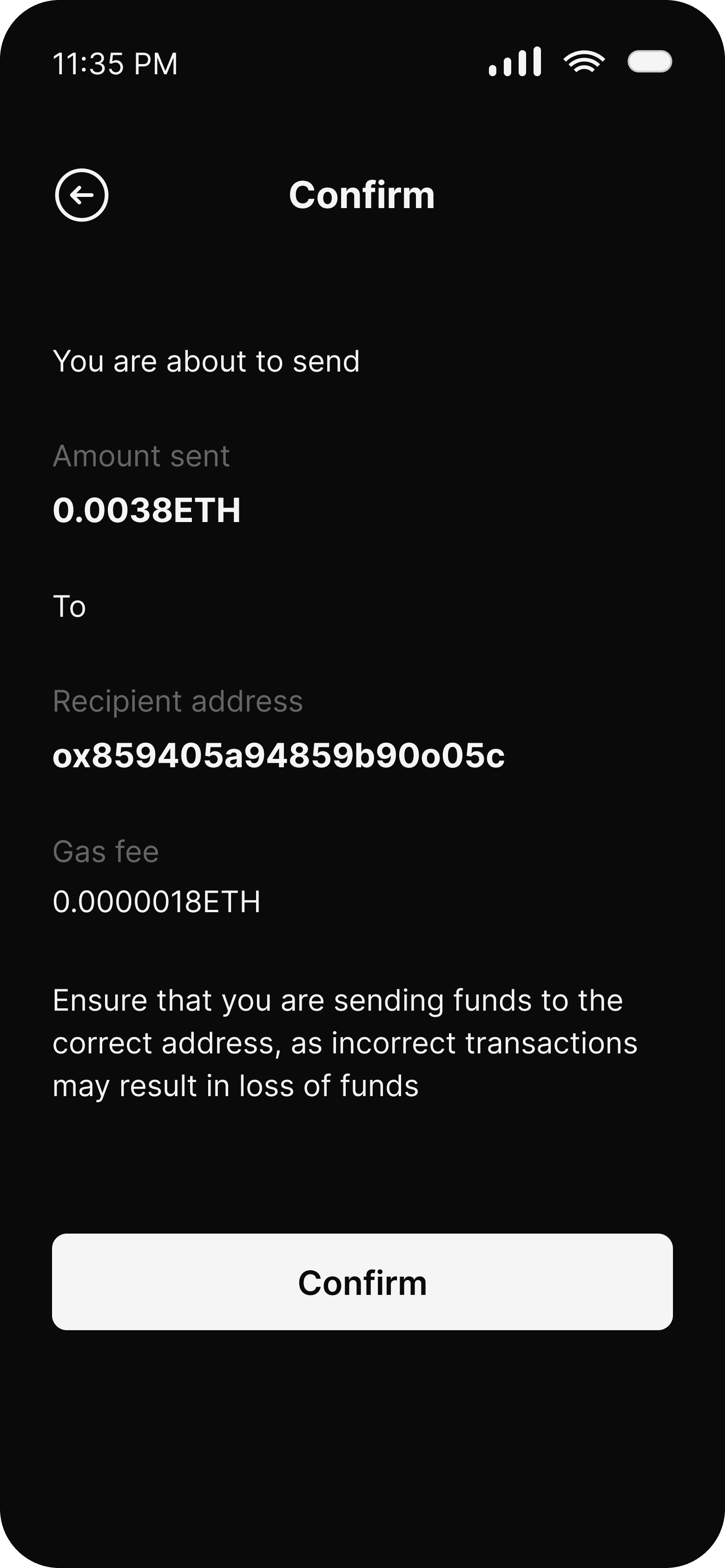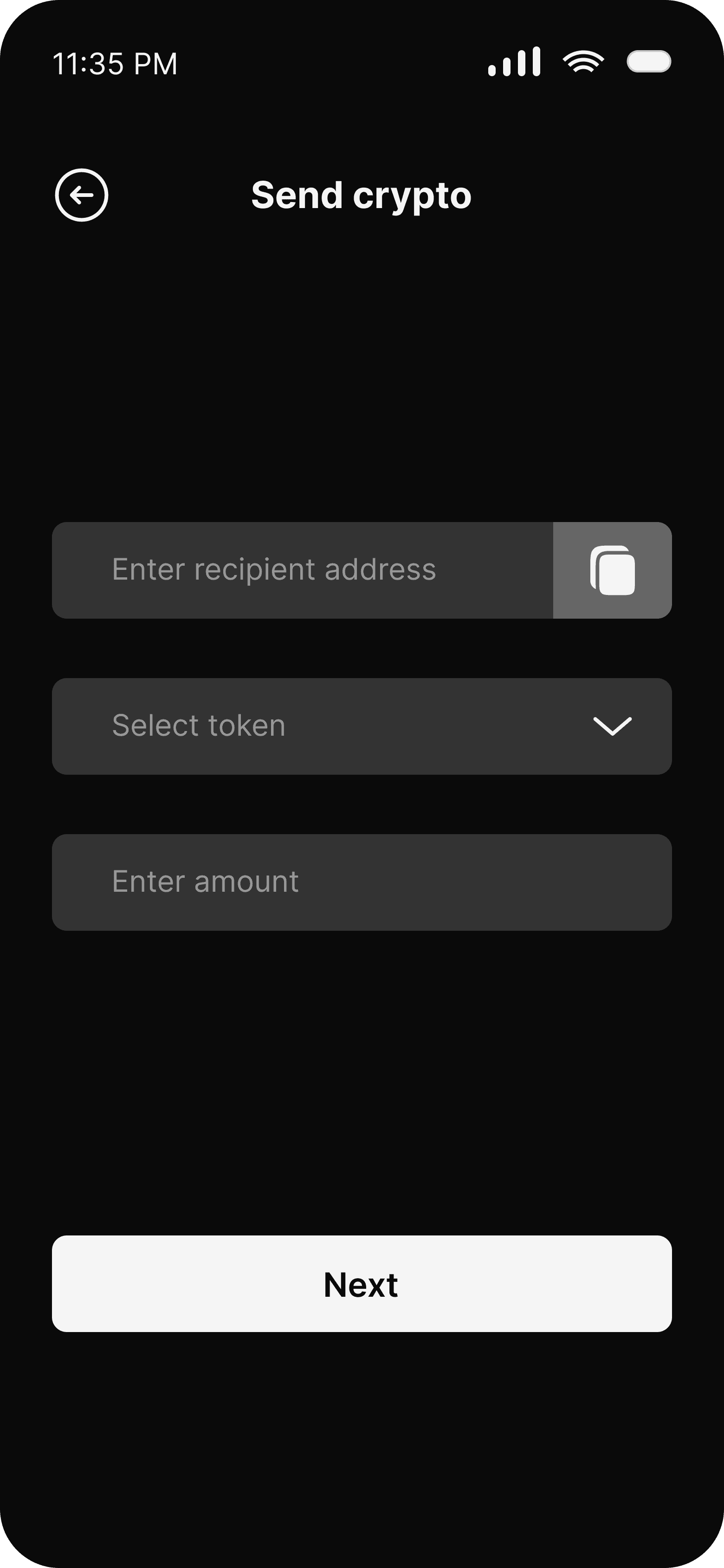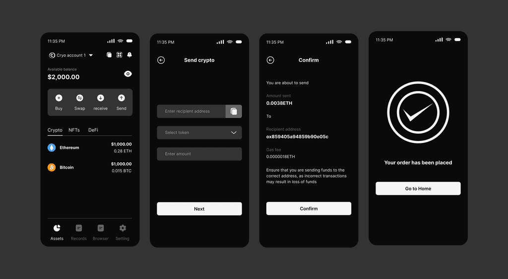 The clients wants a clean user flow from home page to the point where crypto is sent.