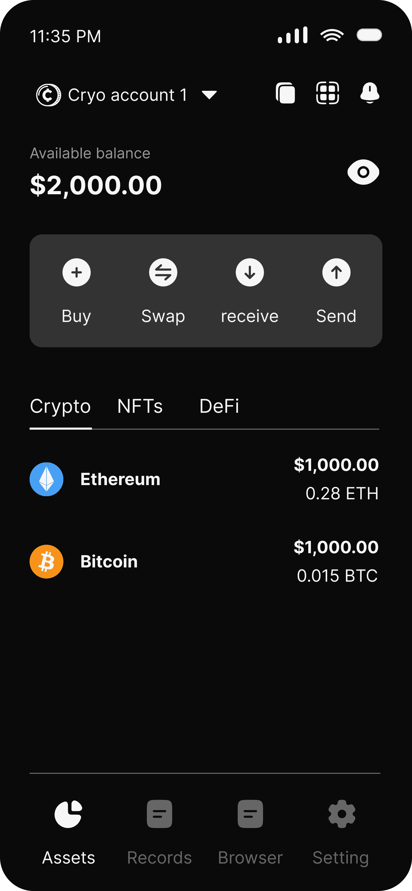Cryo is a finance institution that offer exchange services of fiats to cryptocurrency.